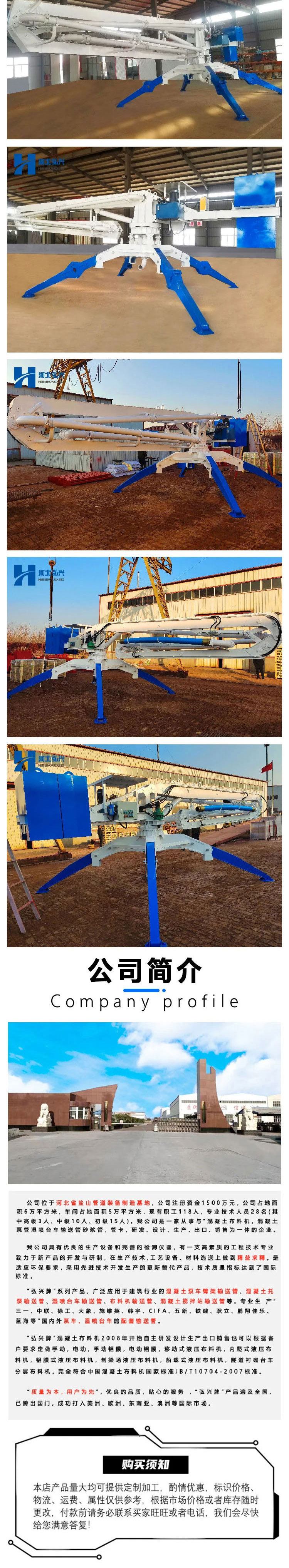 弘兴管道厂家 HGY-15m移动式液压布料机 混凝土机械设备布料机械
