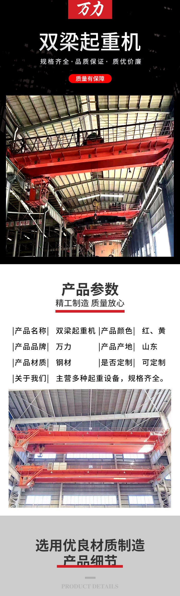 万力定制吨位QD型双梁起重机 手动操作 安全稳固