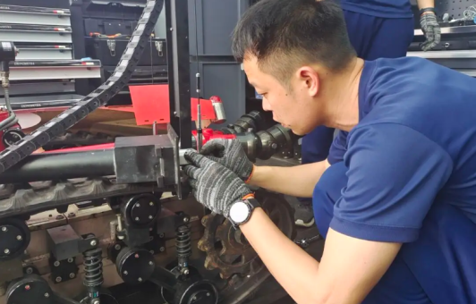 推土机履带维修,这可比补个胎费事多了